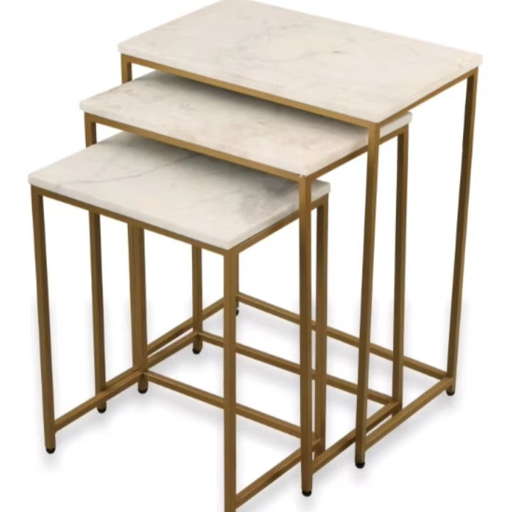 โต๊ะกาแฟหินอ่อน3ชิ้นทันสมัยกรอบโลหะสีทองสำหรับห้องนั่งเล่นหรือห้องครัวเฟอร์นิเจอร์บ้านที่ทันสมัย