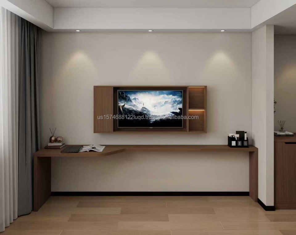 ชุดเฟอร์นิเจอร์ห้องนอนโรงแรม 3 ดาวทันสมัย ครบชุดสำหรับห้องพัก ประกอบด้วยโครงเตียงไม้ โต๊ะข้างเตียง ตู้วางทีวี มินิบาร์ เหมาะสำหรับอพาร์ตเมนต์