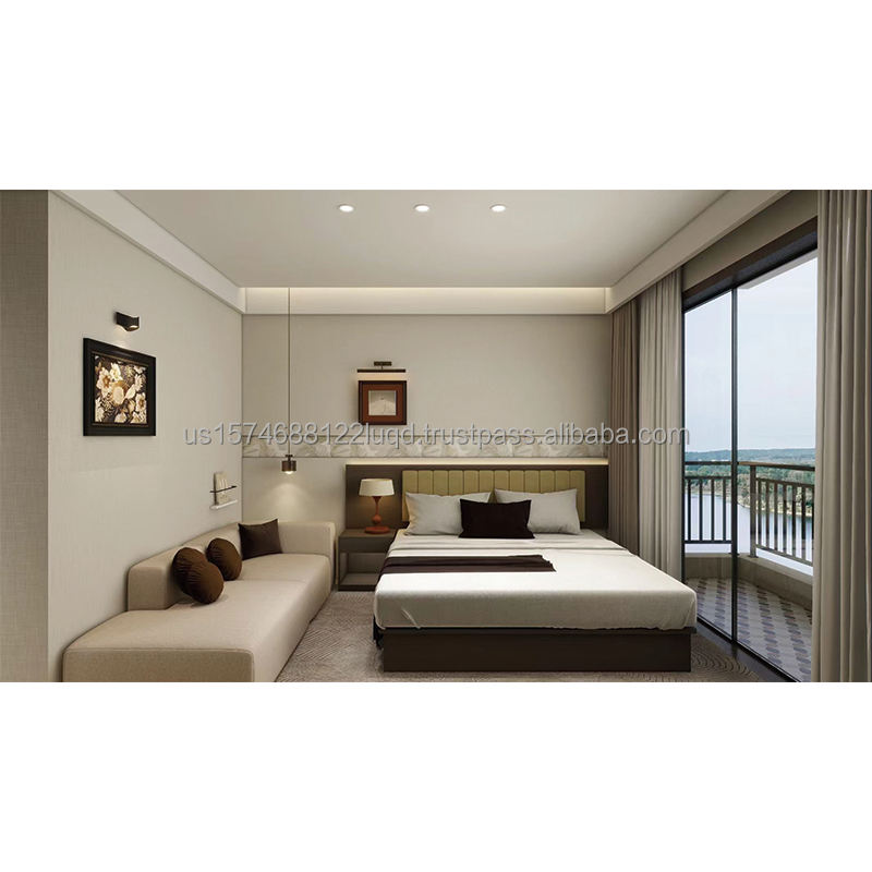 ชุดเฟอร์นิเจอร์ห้องนอนโรงแรม 3 ดาวทันสมัย เตียงคิงไซส์ไม้ หัวเตียงหุ้มเบาะ โซฟา โต๊ะข้างเตียง ตู้วางทีวี ตู้เสื้อผ้า สำหรับอพาร์ทเม้นท์