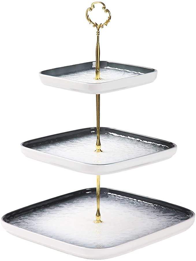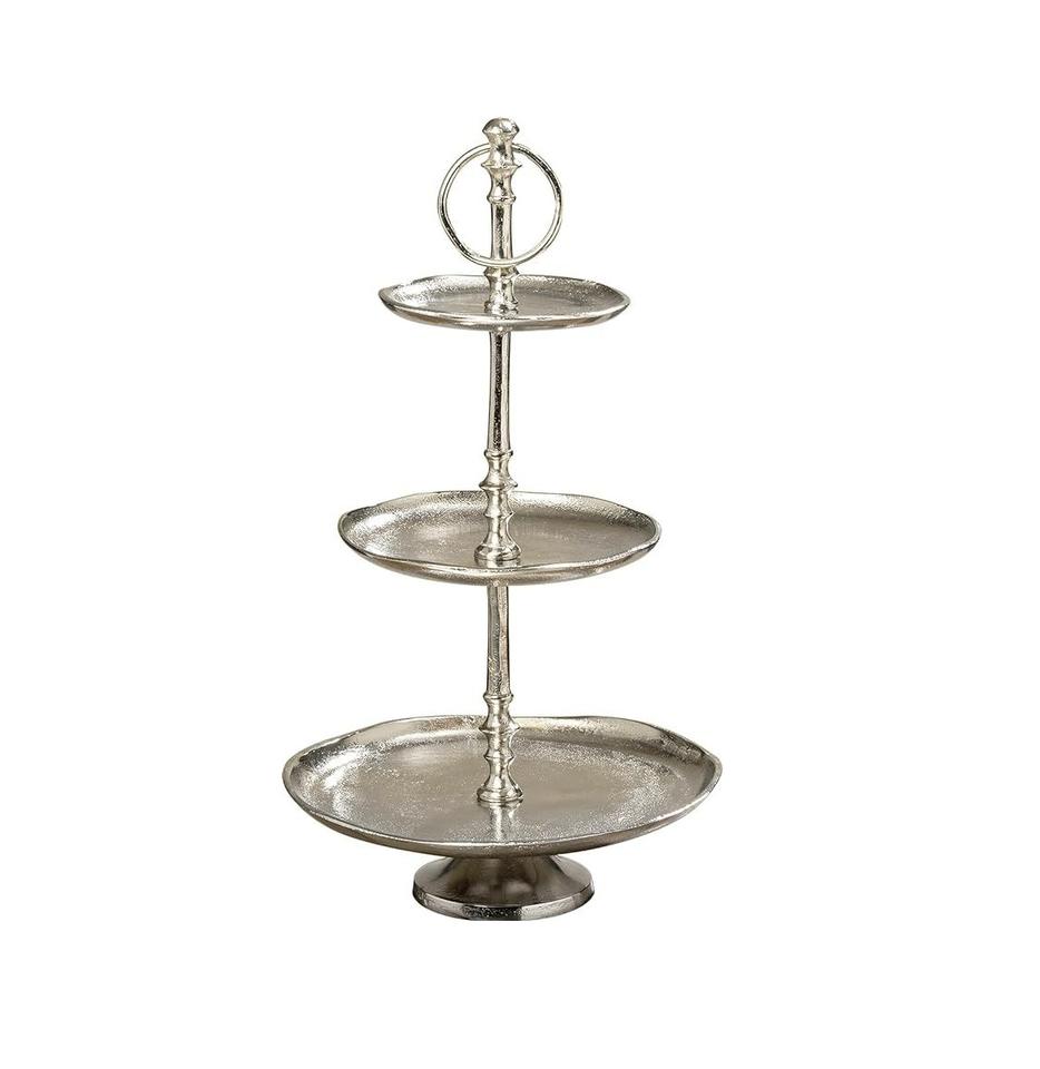 แท่นวางเค้ก3ชั้นแบบทันสมัยโลหะอะลูมิเนียมพร้อมแผ่นชุบนิกเกิลไม่เหมือนใครสำหรับตกแต่งเค้กวันเกิดและเค้ก