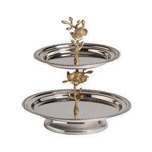 แท่นวางเค้ก3ชั้นแบบทันสมัยที่ไม่ซ้ำใครชุบนิกเกิลอุปกรณ์ตกแต่งเค้กสำหรับงานเลี้ยงวันเกิด