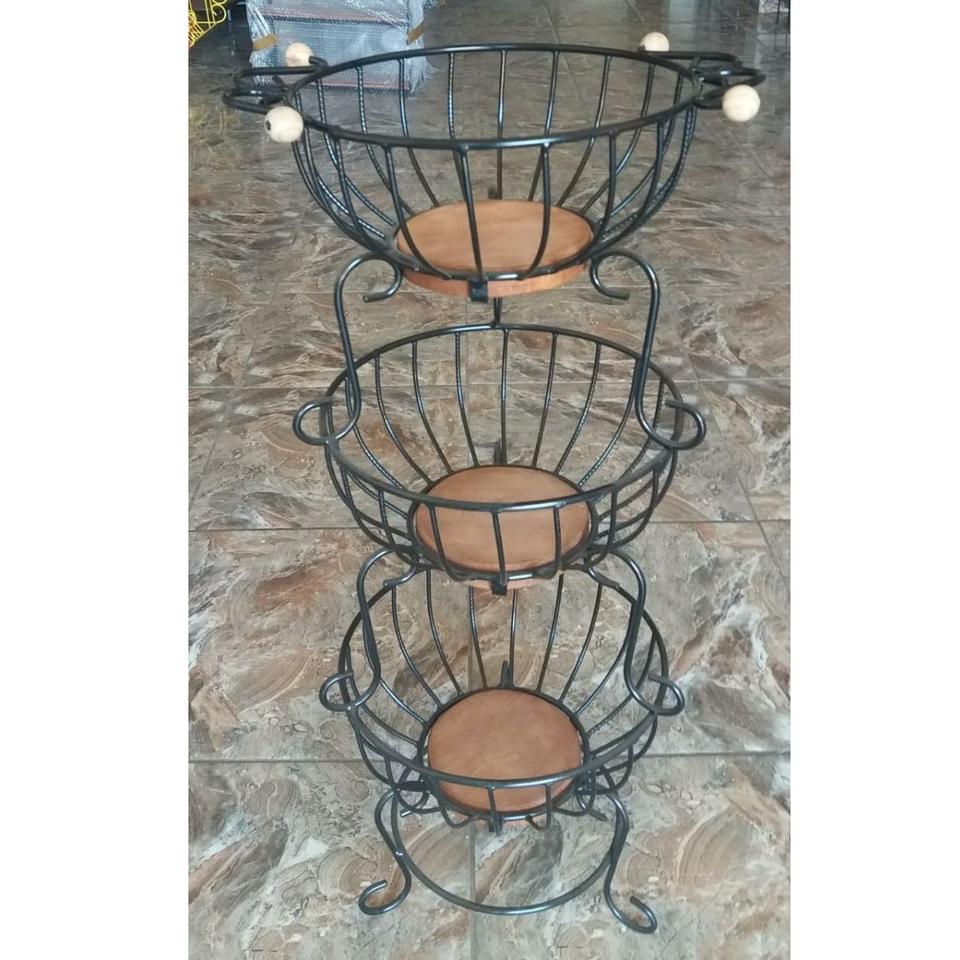 ตะกร้าผลไม้ 3 ชั้น แบบโมเดิร์น ทำจากโลหะและไม้ สำหรับจัดระเบียบเคาน์เตอร์ครัว ใส่ผลไม้ ผัก ขนมปัง และของว่าง