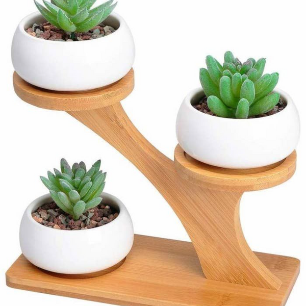 ชั้นวางต้นไม้ไม้แบบมินิมอล 3 ชั้น ทันสมัย พร้อมกระถางเซรามิกสำหรับจัดแสดงไม้อวบน้ำ วางบนโต๊ะ ขอบหน้าต่าง สำนักงาน งานฝีมือไม้