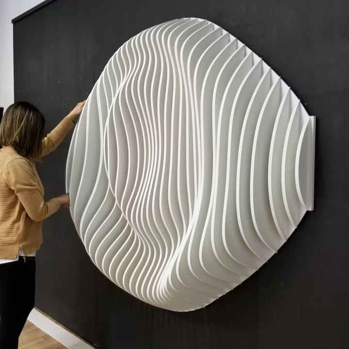 ที่ตกแต่งผนังพาราเมตริกขนาดใหญ่3D ทันสมัยประติมากรรมไม้งานฝีมือ3D การออกแบบอาร์ตเดคโคสำหรับงานเฉลิมฉลองวันเกิดบ้านแขวนได้ง่าย