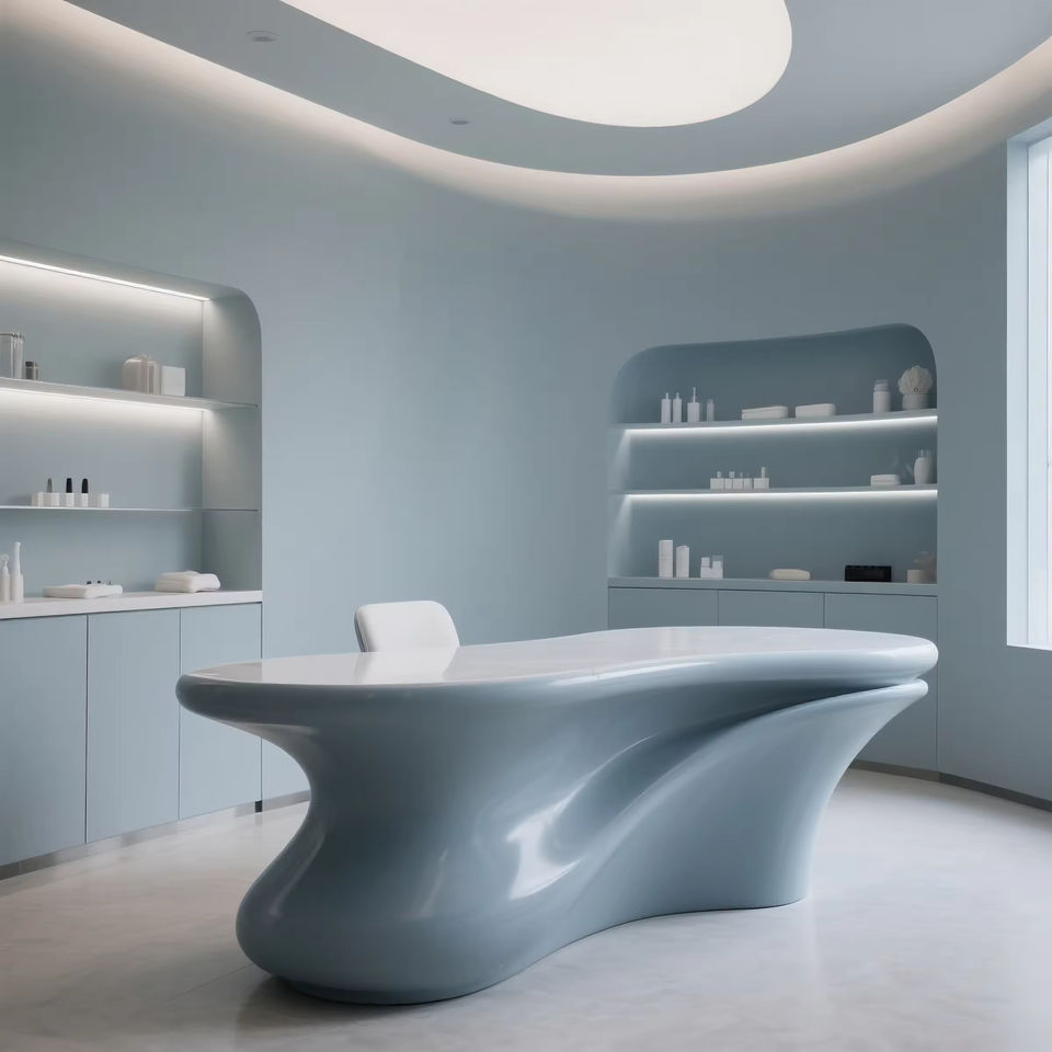 เคาน์เตอร์ต้อนรับทันสมัยแบบพิมพ์ 3 มิติ ดีไซน์เรียบหรู โค้งมน สำหรับสำนักงาน