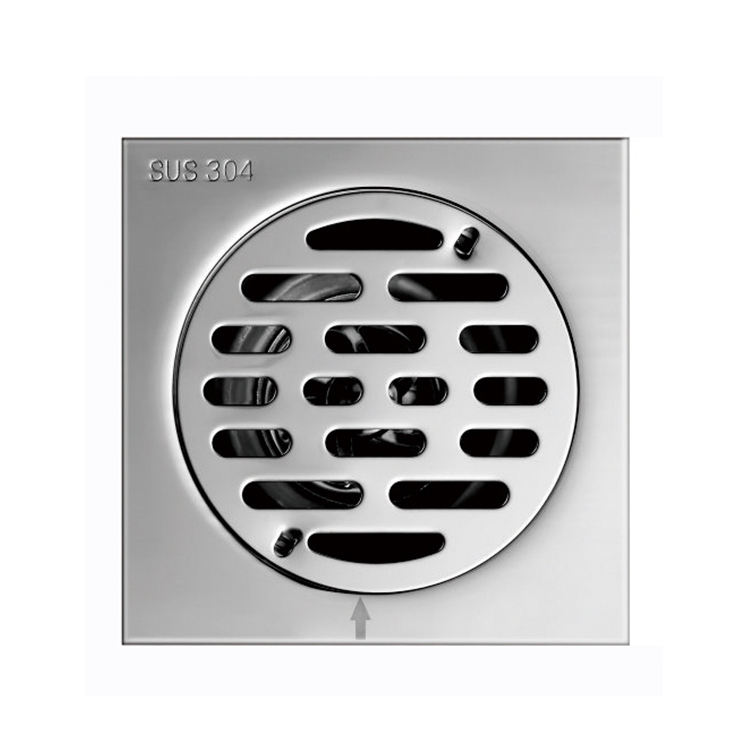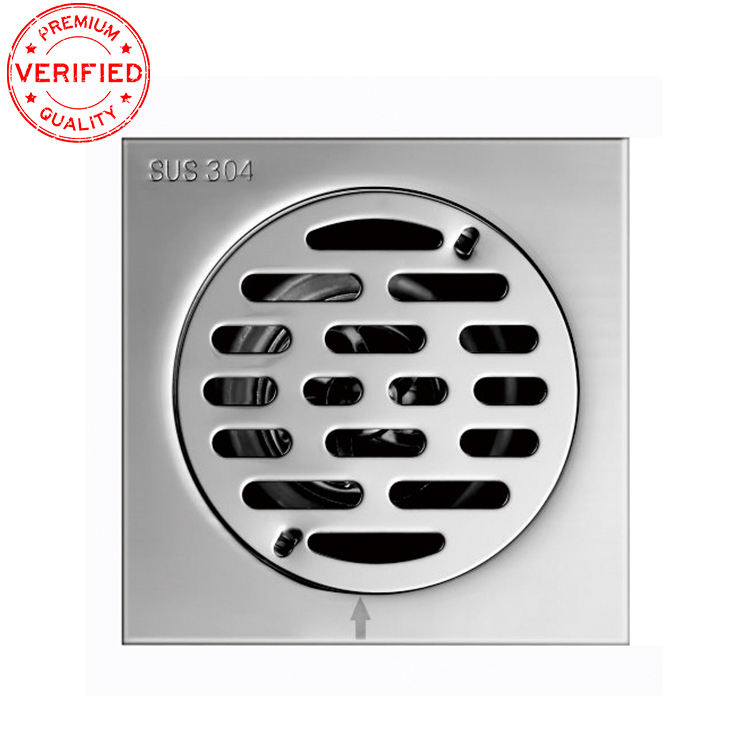 ท่อระบายน้ำฝักบัวแบบสี่เหลี่ยมจัตุรัสขนาด 4 นิ้ว ทำจากสแตนเลส 304 พร้อมตัวป้องกันน้ำไหลย้อนกลับ สำหรับโรงแรม