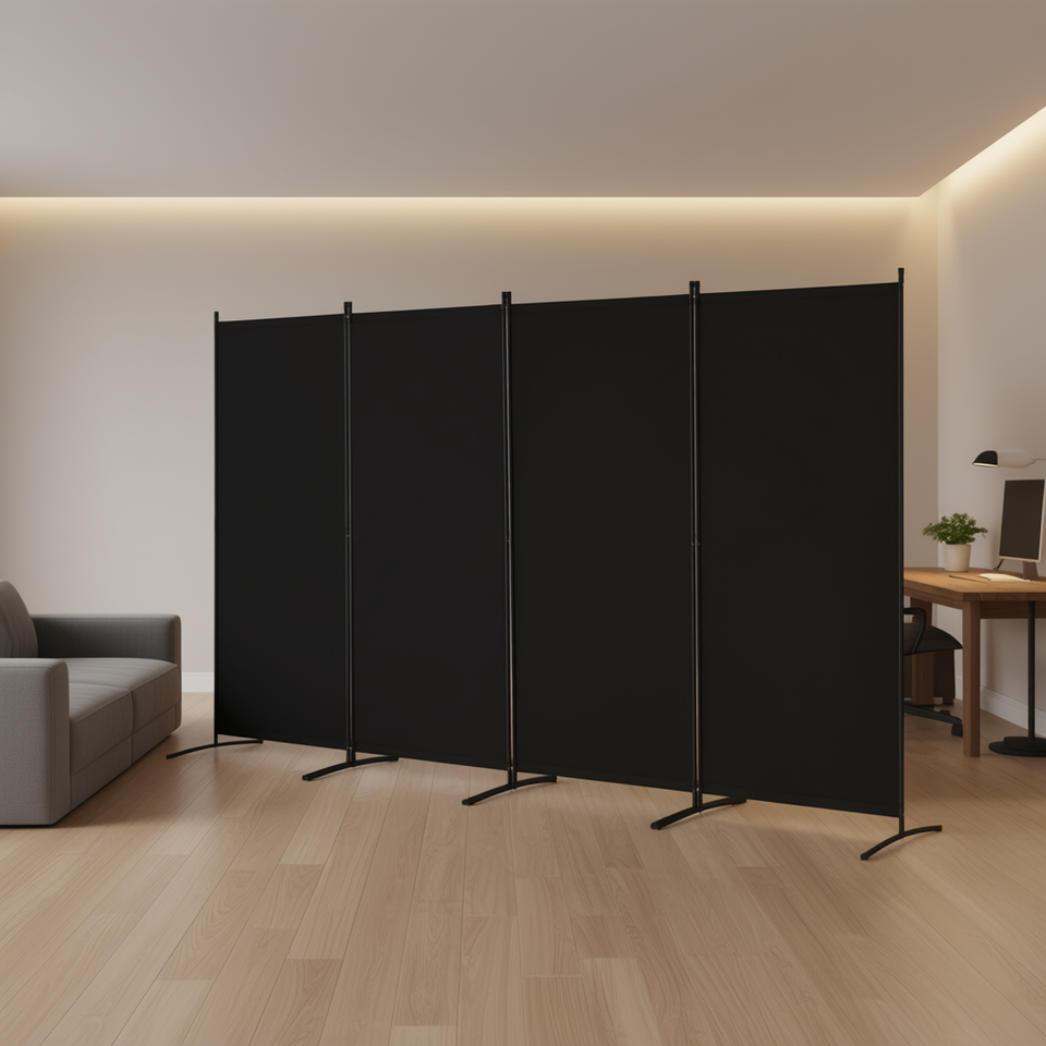 ฉากกั้นห้องพับได้ 4 บาน สีดำ ดีไซน์ทันสมัย พกพาสะดวก สำหรับสำนักงาน ห้องนั่งเล่น บ้าน ดีไซน์มินิมอล