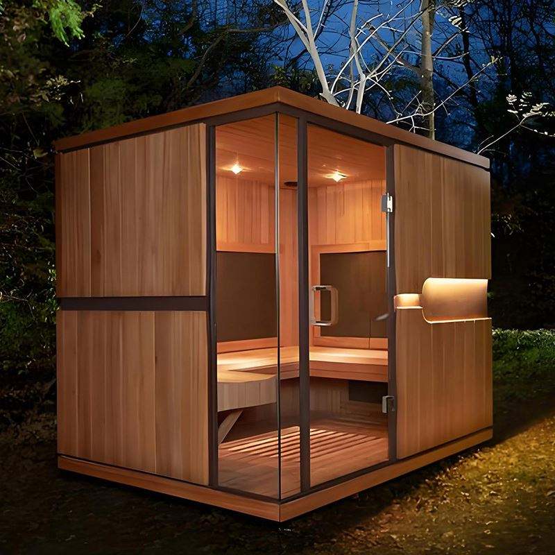 ห้องซาวน่าไฟฟ้ากลางแจ้งแบบปรับแต่งได้ทันสมัยพร้อมไม้เฮมล็อคเนื้อแข็งและเครื่องผลิตออกซิเจนไอออนสำหรับวิลล่า
