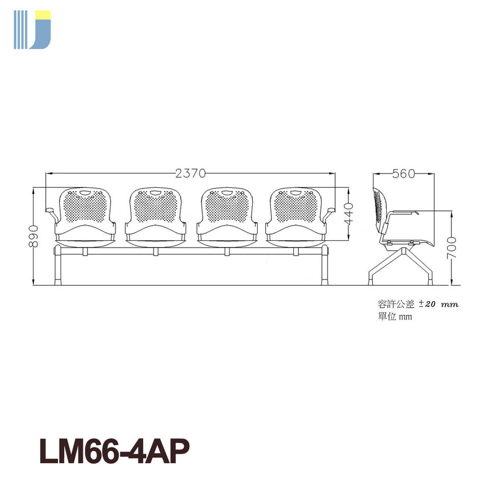 Product name:LM66-4AP 4 Seats Public Bench with Arm