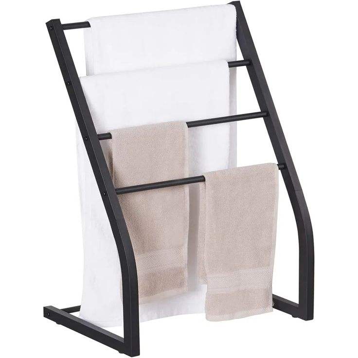 ราวแขวนผ้าขนหนูแบบตั้งพื้น 4 ชั้น วัสดุโลหะ สีดำ สำหรับห้องน้ำ