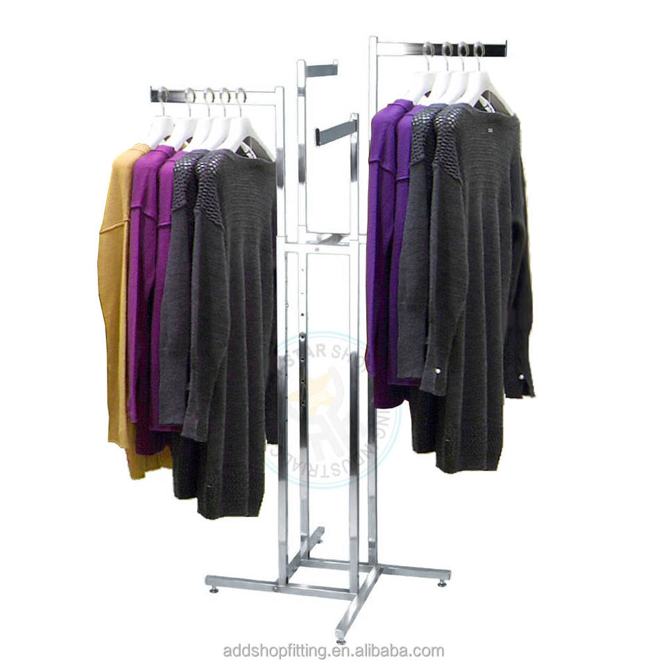 ชั้นวางโลหะโครเมียม4ทางแบบทันสมัยพร้อมประกอบง่ายสำหรับใช้งานขายปลีกและเสื้อผ้า