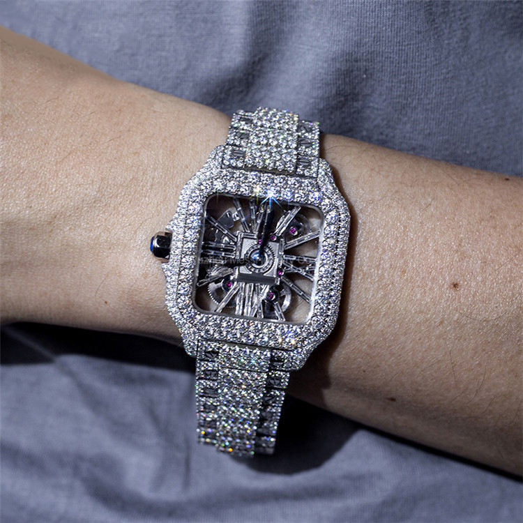 นาฬิกาเพชรโมอิสอัตโนมัติ40มม. ทันสมัย1 CT VVS สเตนเลสสุดหรูแฟชั่นผู้ชายสะโพกแก้วหน้าอก