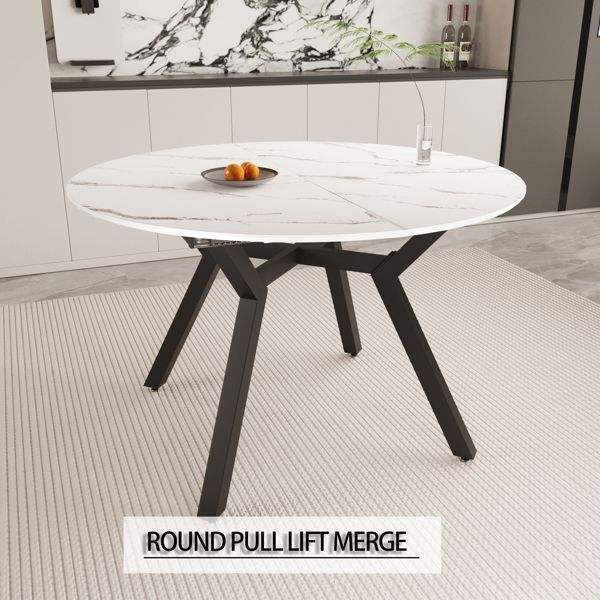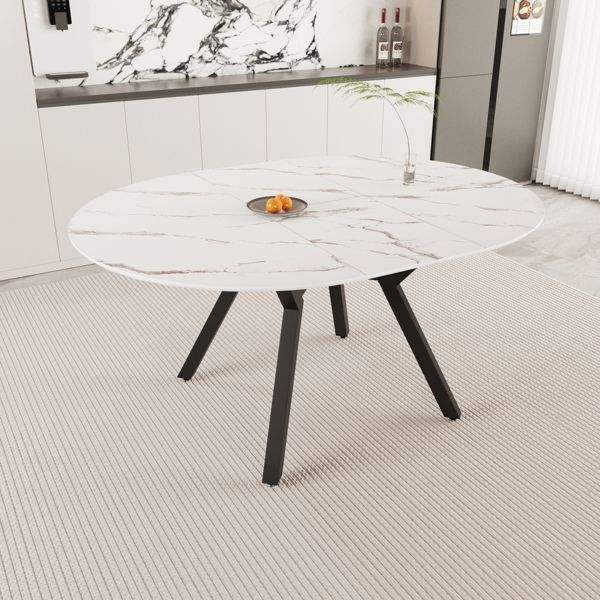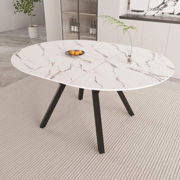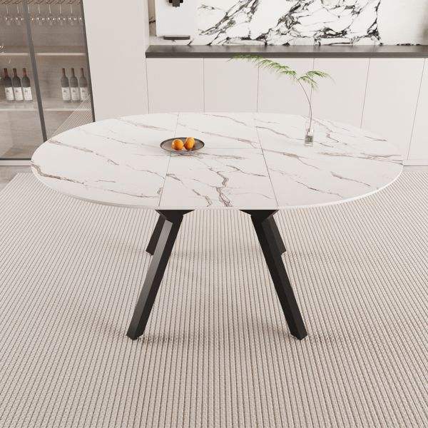 โต๊ะอาหารสีขาวแบบขยายได้ ขนาด 47" 63" สำหรับ 4-6 คน พร้อมท็อป MDF ขาโลหะ ใช้ได้ทั้งในครัวและเป็นโต๊ะกาแฟ