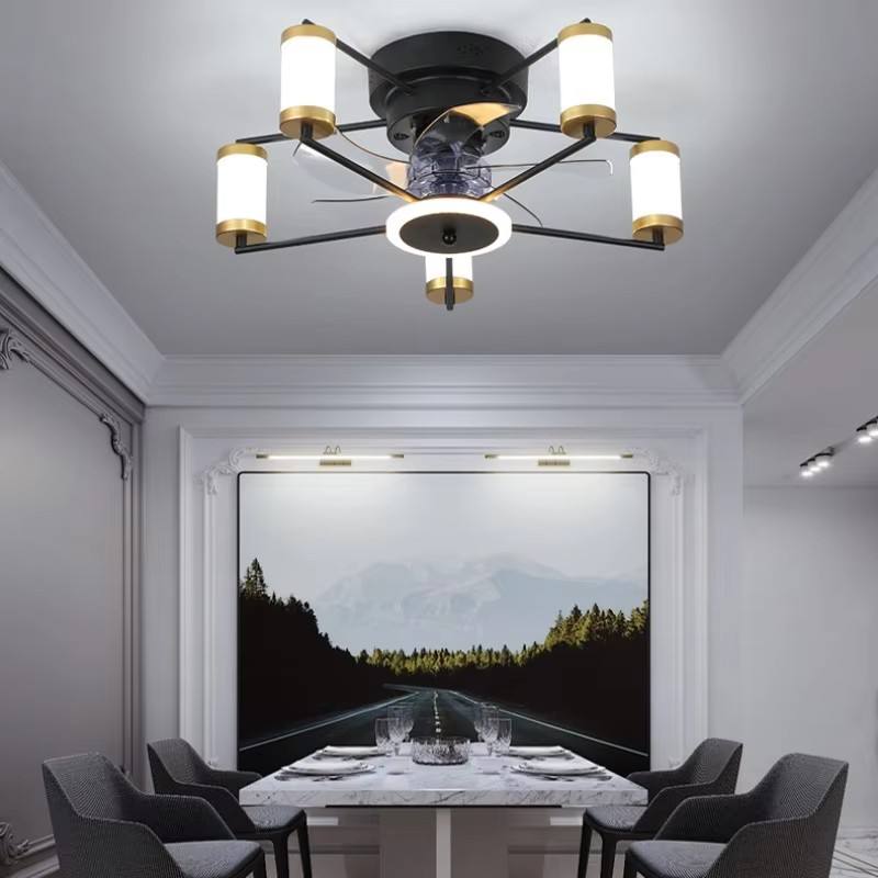 พัดลมเพดานแบบใบพัดซ่อน 5 ใบ รุ่นโมเดิร์น, ไฟ LED ปรับความสว่างได้ 3000K-6500K, มอเตอร์ DC เงียบ 6 ระดับความเร็ว, ตัวเครื่องโลหะ & ควบคุมผ่านแอพและรีโมท