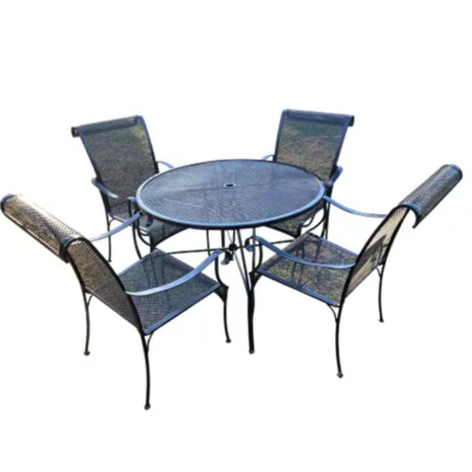 ชุดรับประทานอาหารกลางแจ้ง5ชิ้นทันสมัยพร้อมโต๊ะกลมและเก้าอี้4ตัวโครงอลูมิเนียมเคลือบผงสำหรับสวนระเบียง