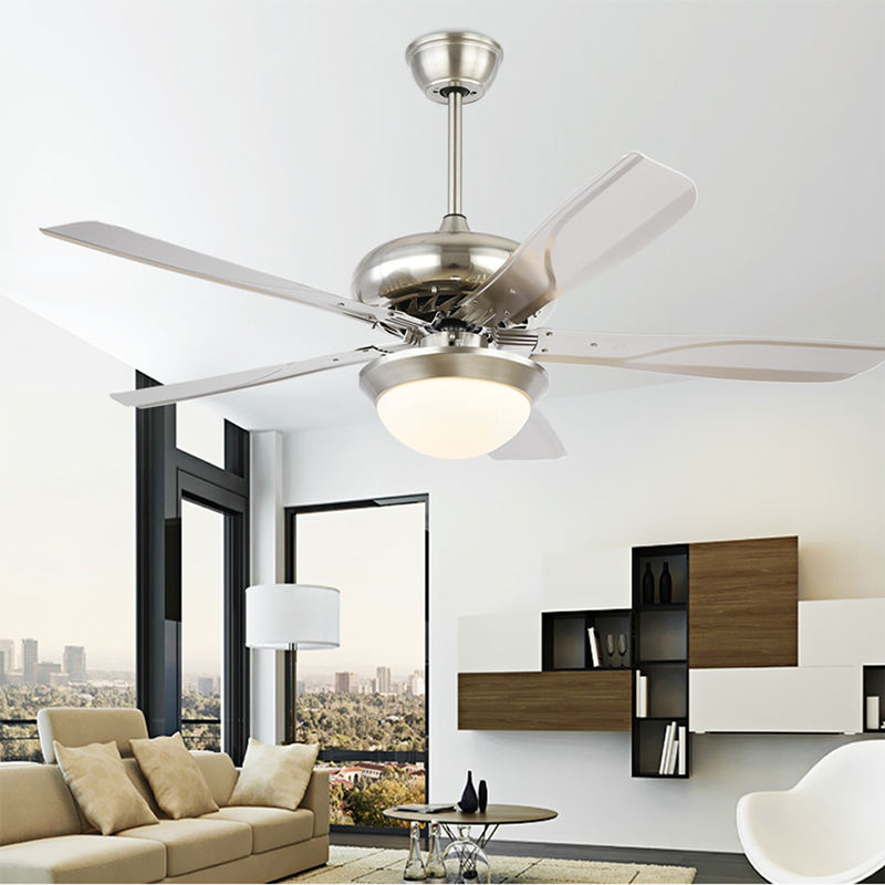 พัดลมเพดานขนาด52นิ้วที่ทันสมัยพร้อมไฟ LED ดีไซน์แบบดั้งเดิมรีโมทคอนโทรล5ใบมีดสำหรับห้องนั่งเล่น