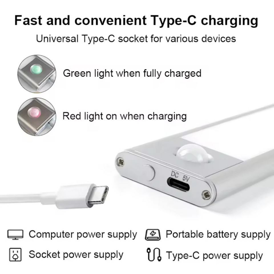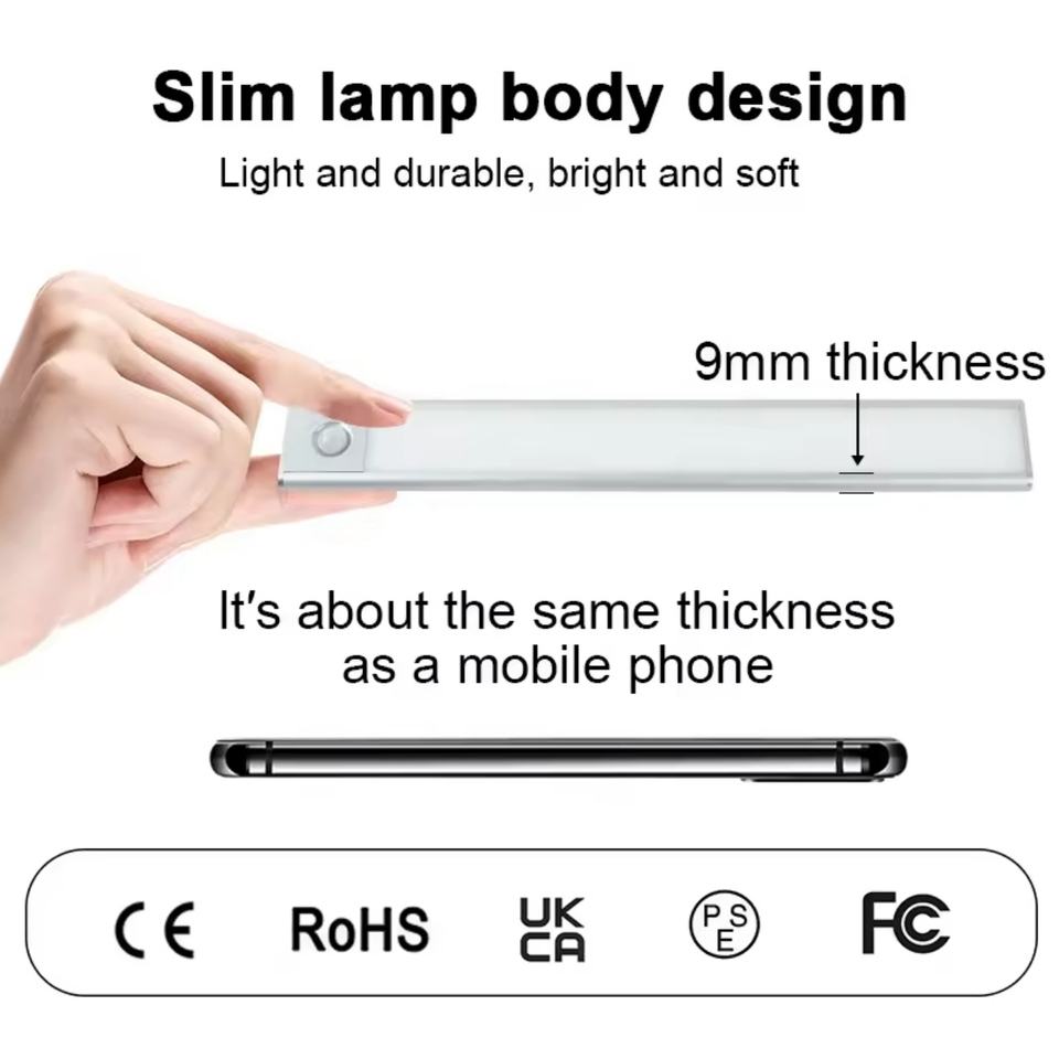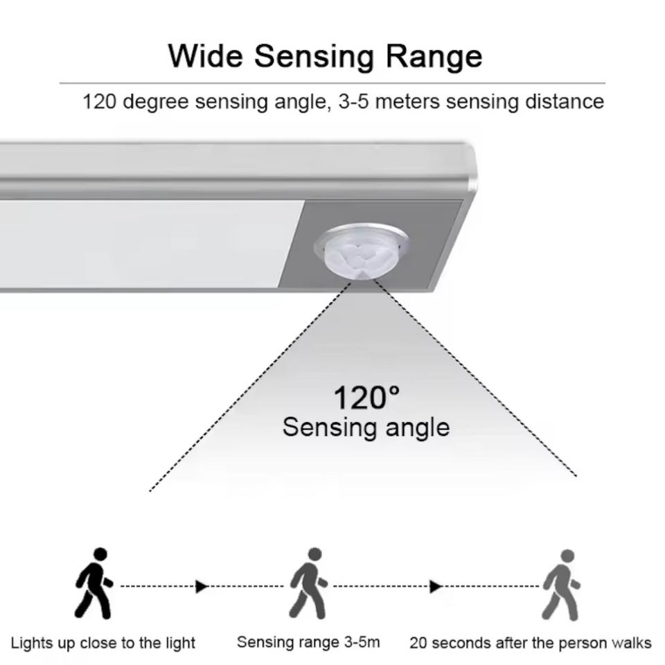 ไฟกลางคืน LED 5V รุ่นใหม่ พร้อมเซ็นเซอร์ตรวจจับความเคลื่อนไหว ใช้พลังงานจากแบตเตอรี่ เหมาะสำหรับห้องครัว ตู้เสื้อผ้า ทางเดิน ห้องนอน บันได ตู้เก็บของ วัสดุอะลูมิเนียม