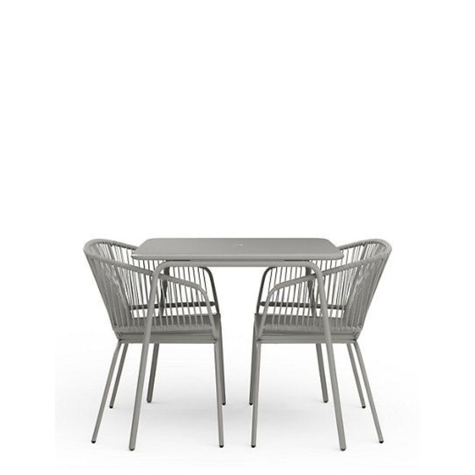 ชุดรับประทานอาหารกลางแจ้ง6ชิ้นทันสมัยโต๊ะเหล็กดัดเคลือบผงสีดำพร้อมม้านั่งเฟอร์นิเจอร์ระเบียงสวน