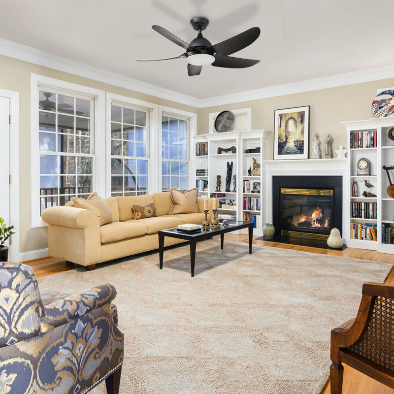 พัดลมเพดาน LED 6สปีดพร้อมรีโมทคอนโทรลสมาร์ทไลท์5ใบพัด100% มอเตอร์ทองแดงสำหรับห้องครัวห้องน้ำผลิตภัณฑ์สีดำ
