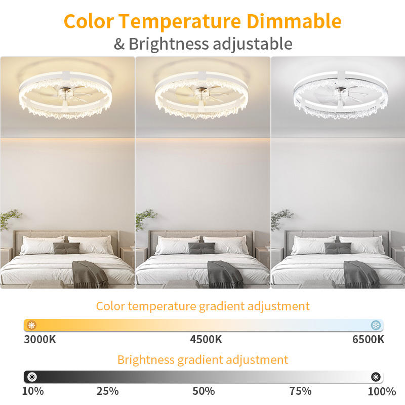 พัดลมเพดาน LED 7 ใบพัด รุ่นใหม่ พร้อมไฟ 6 ระดับความเร็ว มอเตอร์ DC ปรับอุณหภูมิสีได้ 3000K-6500K ควบคุมด้วยรีโมท/แอปพลิเคชัน เงียบ <30 เดซิเบล