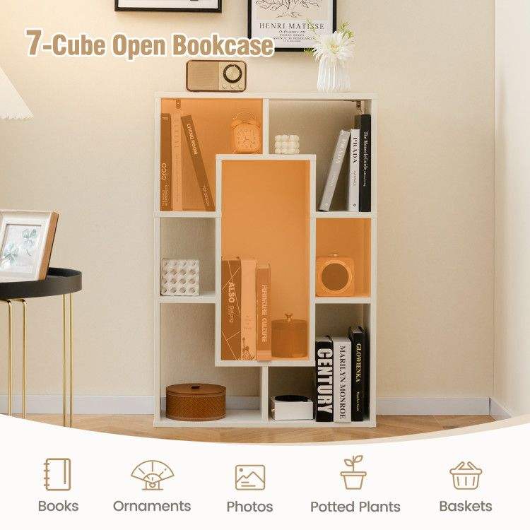 ชั้นวางหนังสือทรงเรขาคณิต 7 ช่องแบบเปิดสไตล์โมเดิร์น