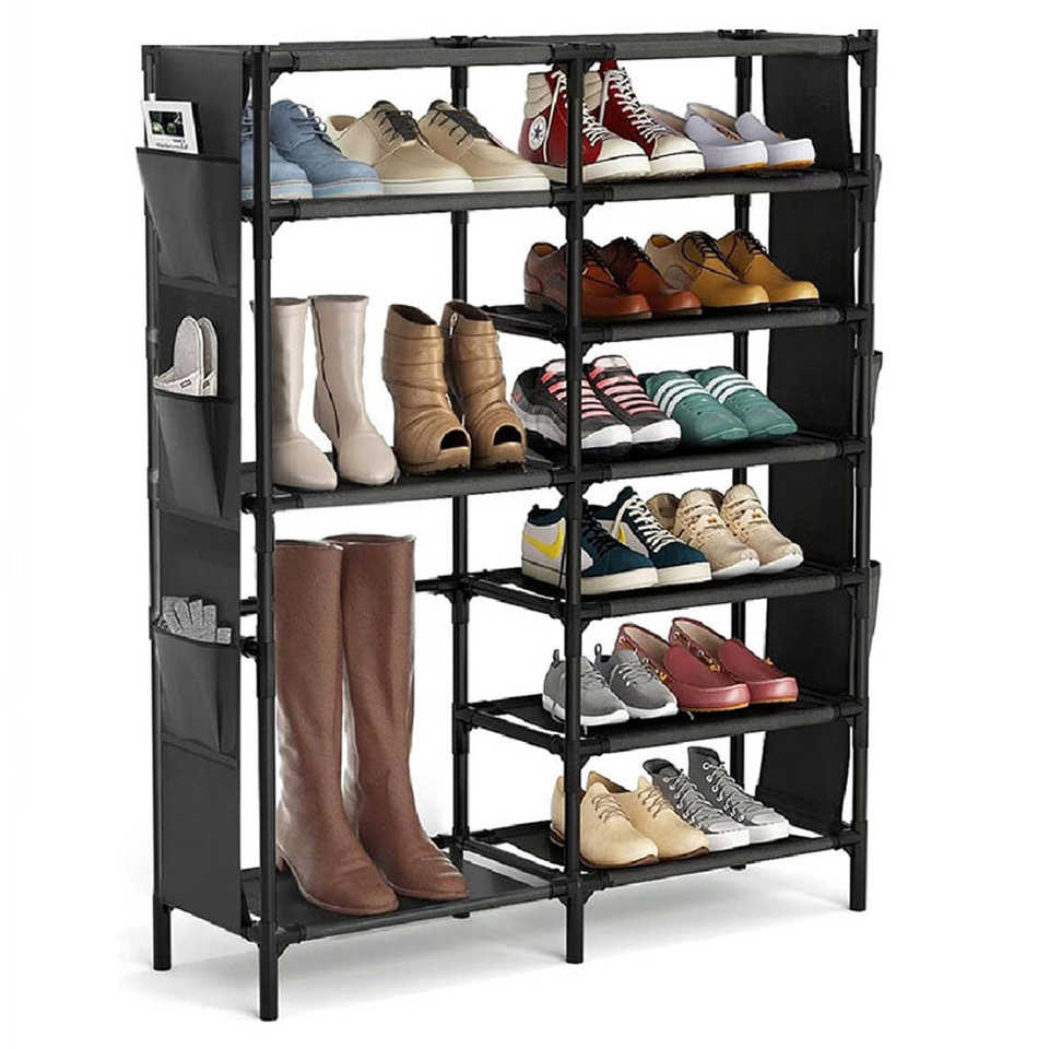Modern 7-Tier Convertible MDF Shoe Rack Organizer Space-Saving Shoe Cabinet for Home Living Room Furniture