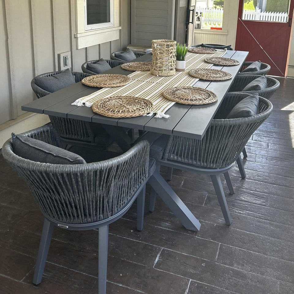 ชุดรับประทานอาหารกลางแจ้ง8ชิ้นทันสมัยทนทานกันน้ำสำหรับโต๊ะพร้อมเก้าอี้เชือกสำหรับอพาร์ทเมนต์ระเบียงระเบียงร้านอาหาร