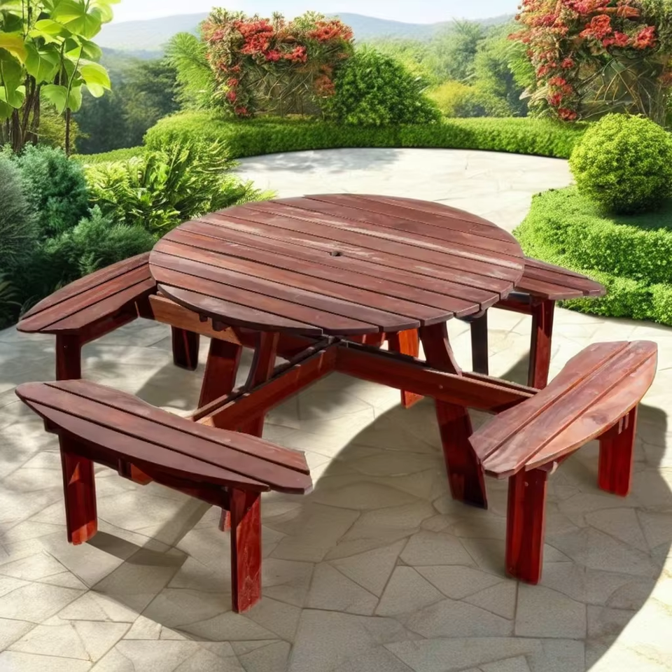 ชุดเก้าอี้โต๊ะปิกนิกกลางแจ้งทำจากไม้เนื้อแข็ง8-Seater ทันสมัยเฟอร์นิเจอร์ทนทานต่อสภาพอากาศสำหรับสวนโรงแรมคลังสินค้า