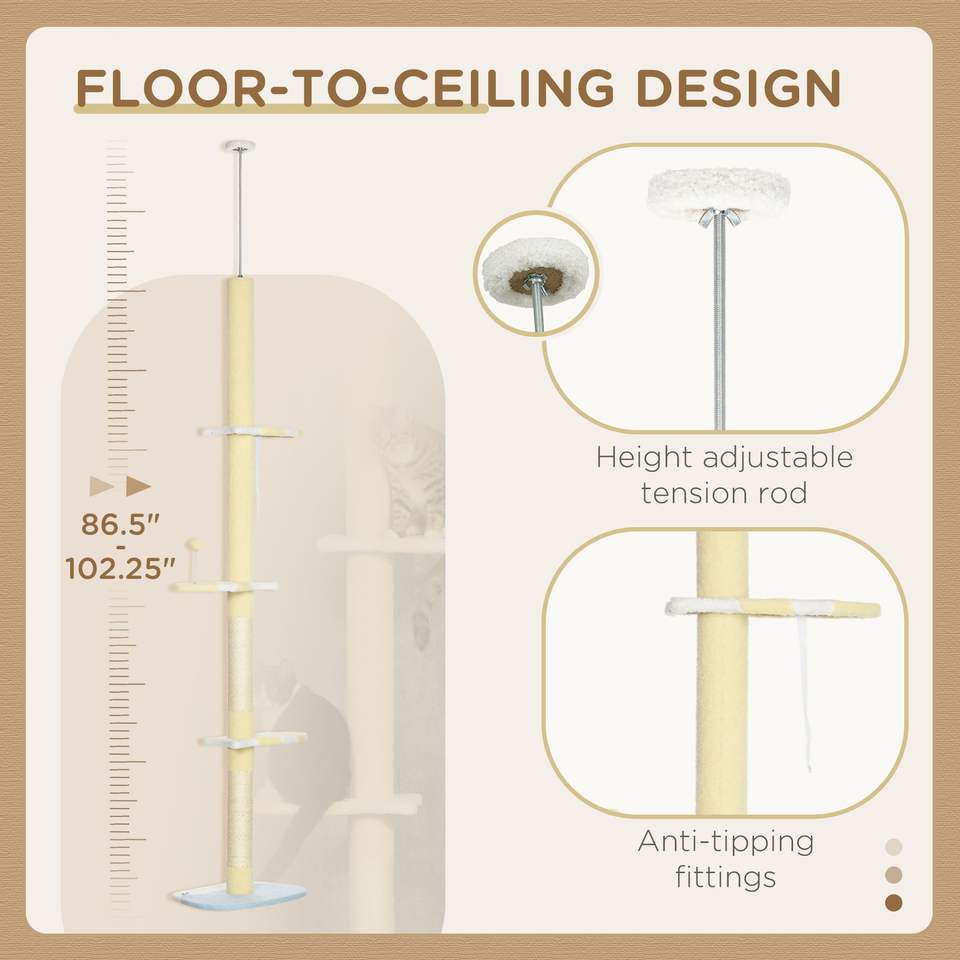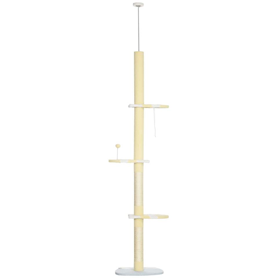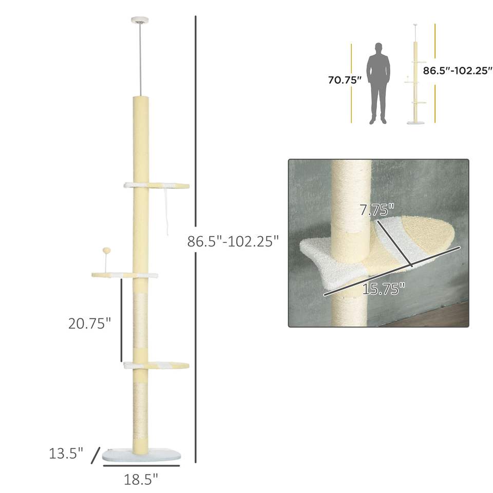 ต้นไม้แมวปรับระดับได้ขนาด 87-103 นิ้ว รุ่นโมเดิร์น 4 ชั้น พร้อมของเล่นลูกบอล ที่ปีนป่ายและที่ข่วนสำหรับแมวในบ้าน