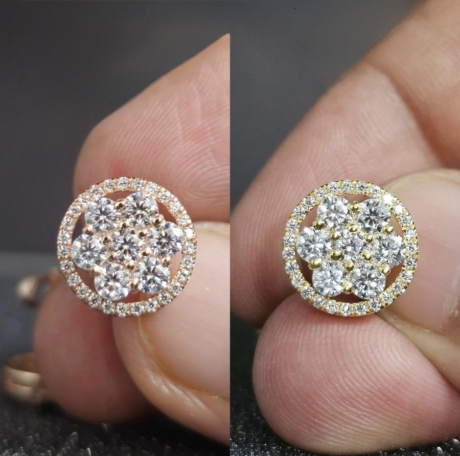 ต่างหูเพชรทรงบริลเลียนต์เจียระไนจากห้องปฏิบัติการ เงินแท้ 925 ชุบทอง ดีไซน์ทันสมัย สง่างาม สำหรับผู้หญิง ให้ลุคหรูหราและมีเสน่ห์
