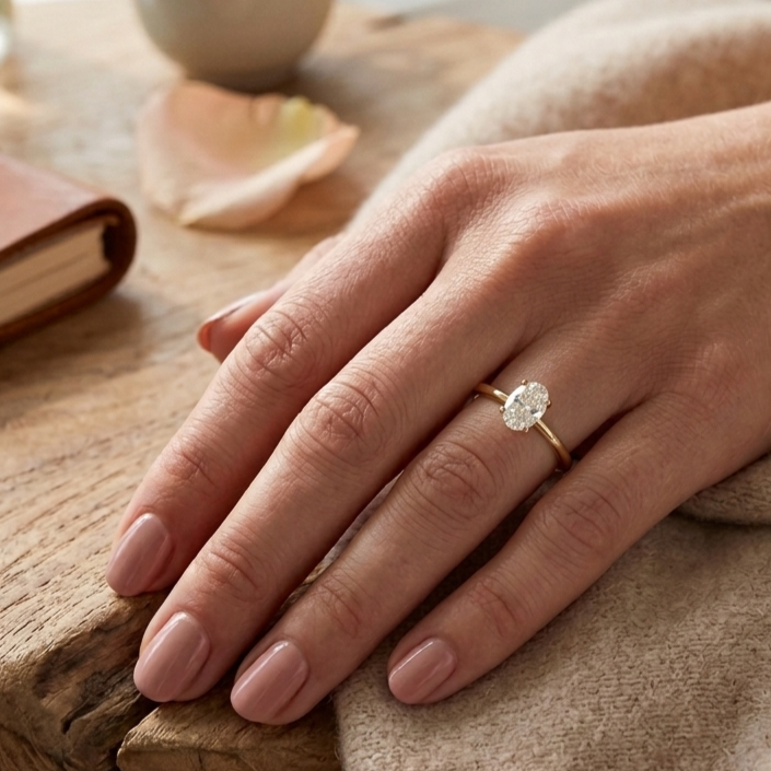 อนิวา9K สีเหลืองทอง IGI VVS1ที่ได้รับการรับรอง E สี1-5 CT ตัดวงรีห้องปฏิบัติการปลูกเพชรแหวนหมั้นแหวนเพชร