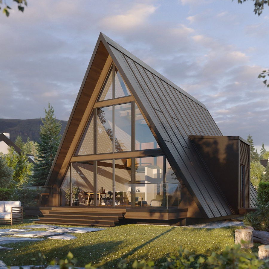 บ้านกระท่อมหลังเล็กทรงสามเหลี่ยมโมดูลาร์สุดหรูทันสมัย