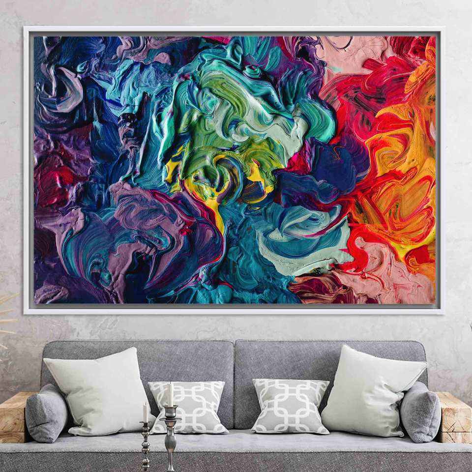 Modern Abstract Art Glass Print: Vibrant Wall Decor on Printed Canvas,Whte Framed Canvas
