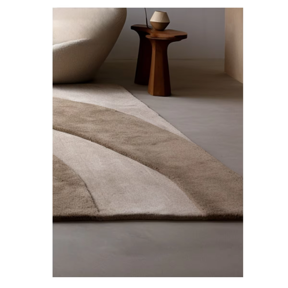 พรมปูพื้นขนสัตว์สีเบจทำมือลายวิสคอสแบบโมเดิร์นสูงสำหรับบ้านสำนักงานห้องนั่งเล่นเป็นมิตรกับเด็กขนาด4*6 12ฟุต