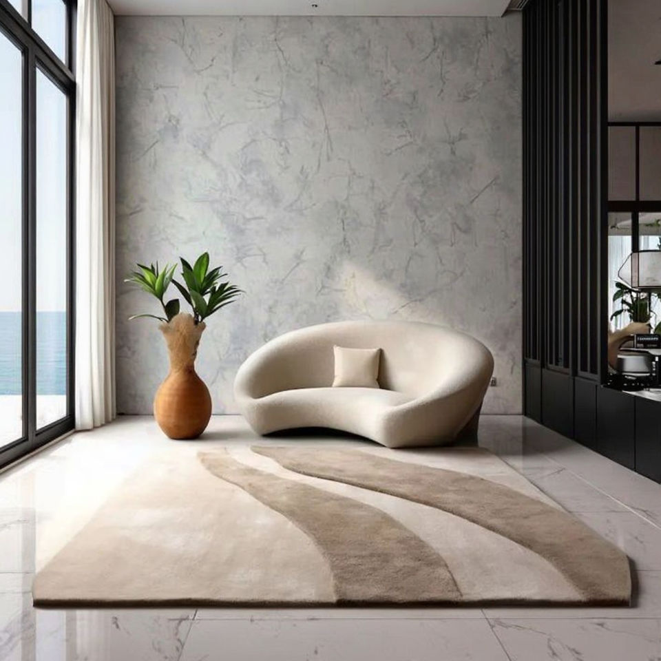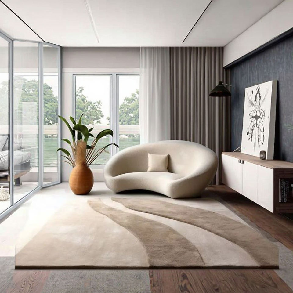 พรมขนแกะสีเบจทำมือกันลื่นกันน้ำได้สำหรับบ้านสำนักงานห้องนั่งเล่นห้องเด็กขนาดต่างๆ