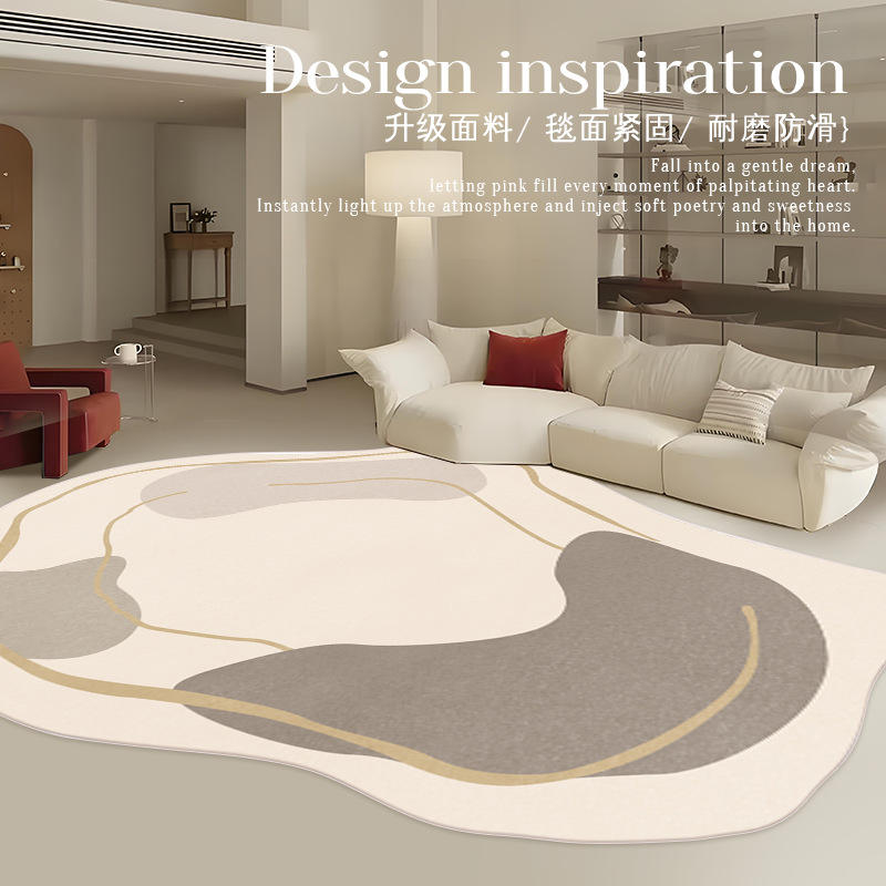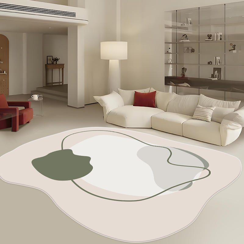 พรมแคชเมียร์เทียมลายโมเดิร์นรูปทรงแปลกตา สีครีม กันลื่น ตกแต่งบ้าน ดีไซน์ปี 2025