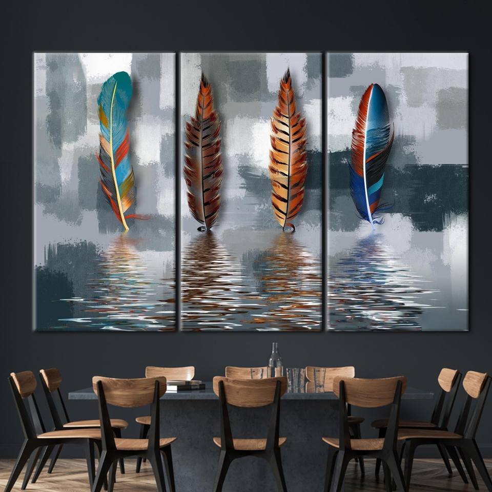 ผ้าใบศิลปะติดผนังลายขนนกแบบนามธรรมสมัยใหม่ - ภาพพิมพ์ร่วมสมัยที่หรูหรา,3P:ห่อหุ้มแบบแกลเลอรี