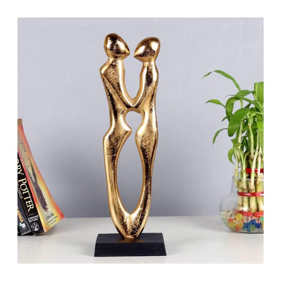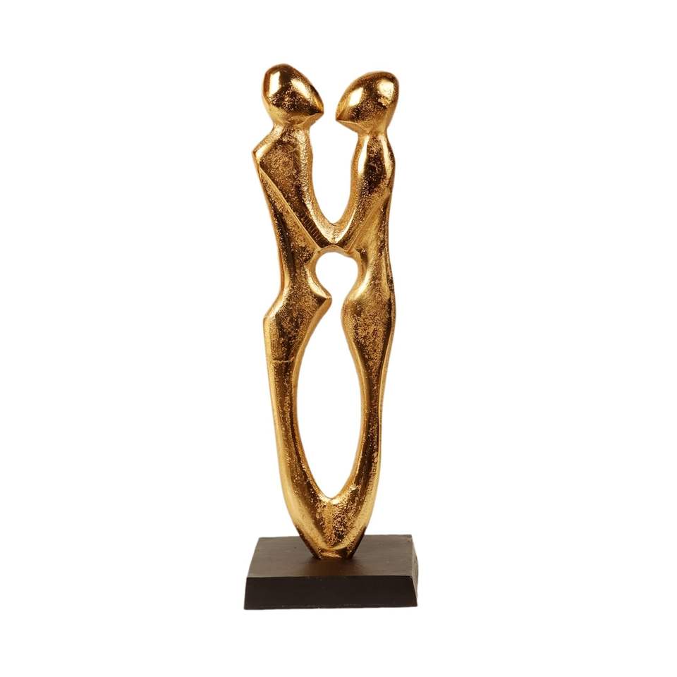 รูปปั้นอลูมิเนียมสีทองแอบสแตรกต์ของคนรักโรแมนติกรูปปั้นศิลปะสมัยใหม่หรูหราพร้อมฐานสีดำสำหรับตกแต่งบ้านสำนักงานและของขวัญ