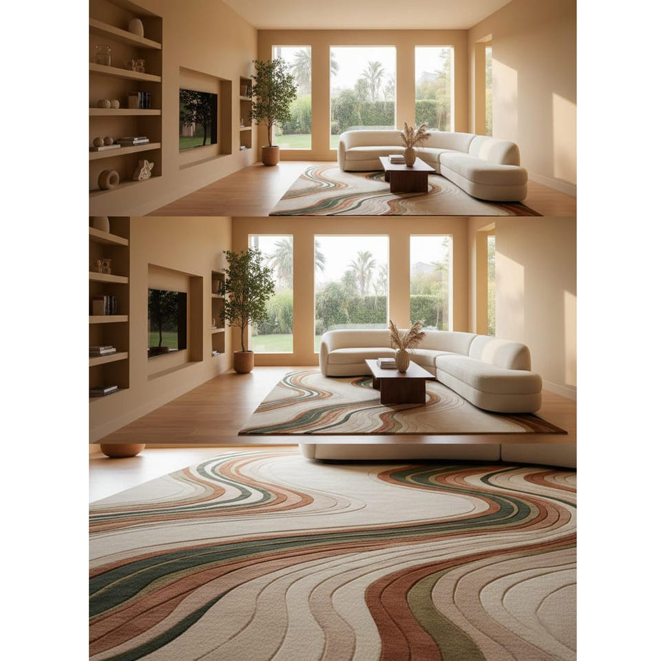 พรมขนสัตว์ทอมือลายโมเดิร์นแบบนามธรรม พรมดีไซน์หรูสำหรับห้องนั่งเล่น ห้องนอน พร้อมแผ่นรองยางพารา ของขวัญปีใหม่ ขายส่ง