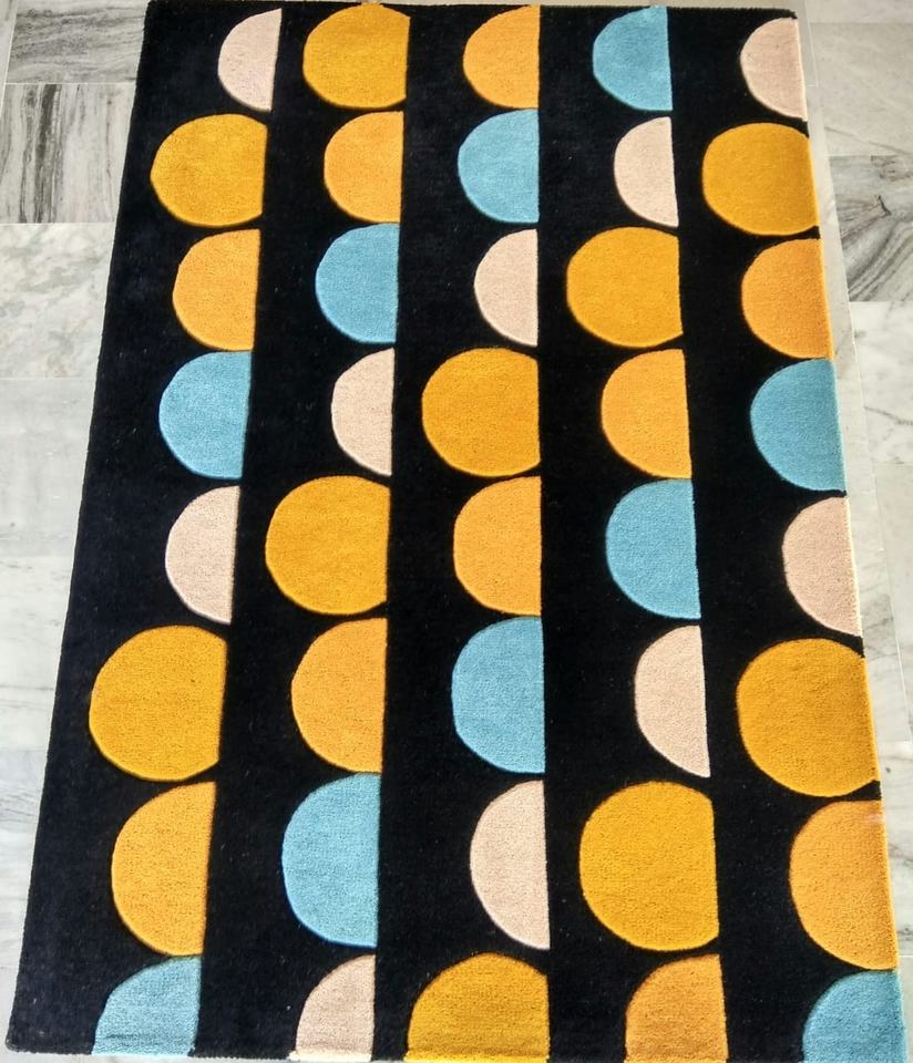 พรมขนสัตว์ทอมือแบบนามธรรมที่ทันสมัย | พรมสีดำที่มีรูปทรงเรขาคณิตครึ่งวงกลมที่มีสีสันสำหรับห้องนั่งเล่นและสำนักงาน