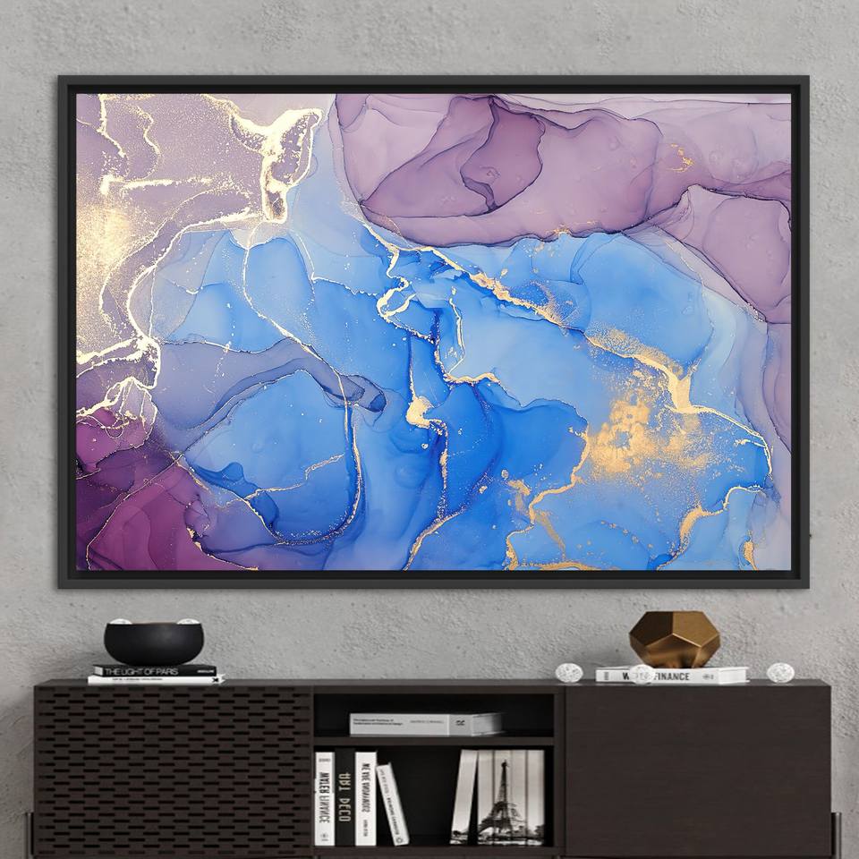 ภาพพิมพ์ศิลปะหินอ่อนสีทองหรูหราแบบนามธรรมสมัยใหม่สำหรับตกแต่งผนังบนผ้าใบ,1P:กรอบสีดำ