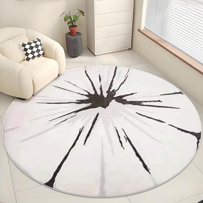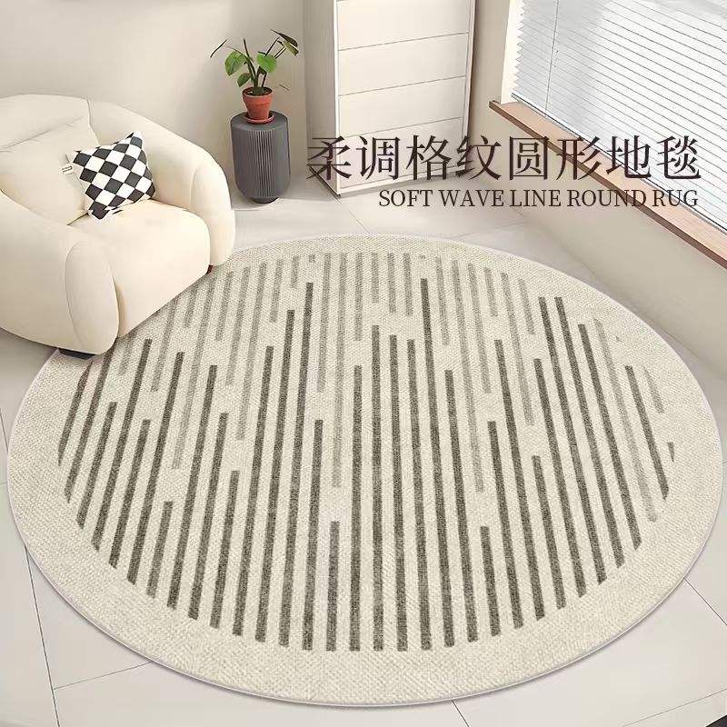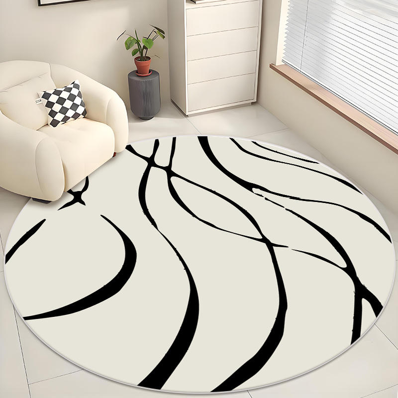 พรมทรงกลมแบบนามธรรมสมัยใหม่ แผ่นรองพื้นกันลื่นสำหรับห้องนั่งเล่น ห้องนอน เบาะรองเก้าอี้ ทำความสะอาดง่าย ซักมือได้ ขนาด 150 ซม.