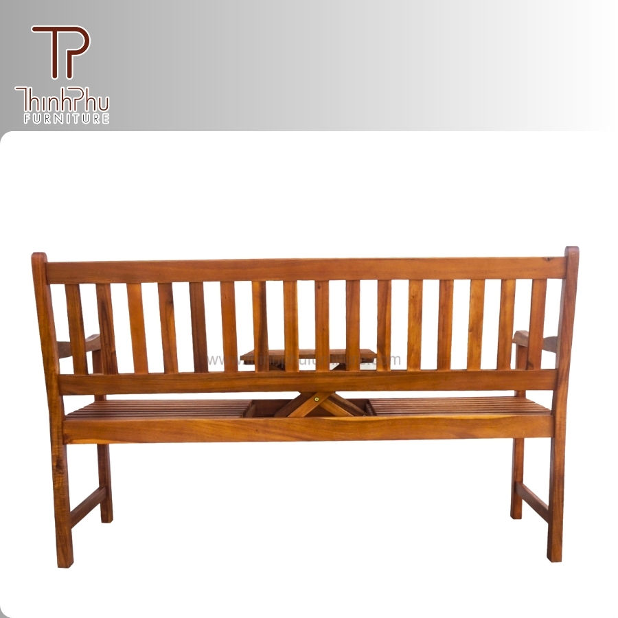 ม้านั่งไม้เนื้อแข็งอะคาเซียทันสมัย ทนทาน พร้อมโต๊ะพับเก็บได้ เฟอร์นิเจอร์กลางแจ้งสำหรับสวนสาธารณะ ห้างสรรพสินค้า โรงแรม-ธินห์ฟู เฟอร์นิเจอร์
