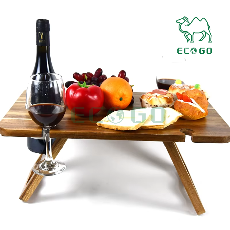 โต๊ะไวน์ไม้อะคาเซียแบบทันสมัยพกพาพกพาพกพาได้โต๊ะรับประทานอาหารกลางแจ้ง