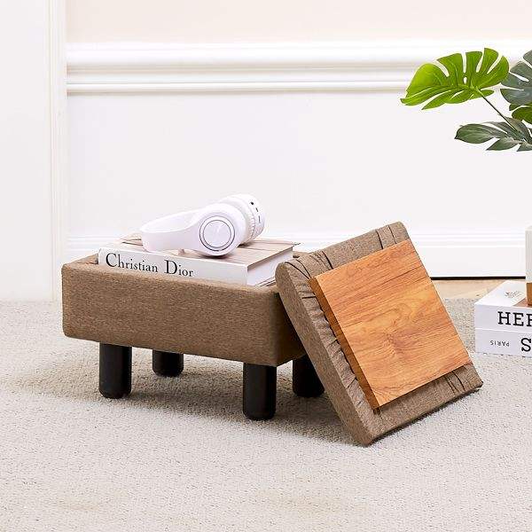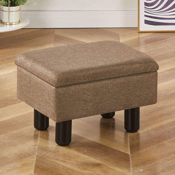 เก้าอี้พักเท้าแบบมีที่เก็บของ รุ่นโมเดิร์น แอคเซนท์ ลินิน ขาไม้เนื้อแข็ง ใช้เป็นเก้าอี้เสริมสำหรับโซฟาในห้องนั่งเล่น