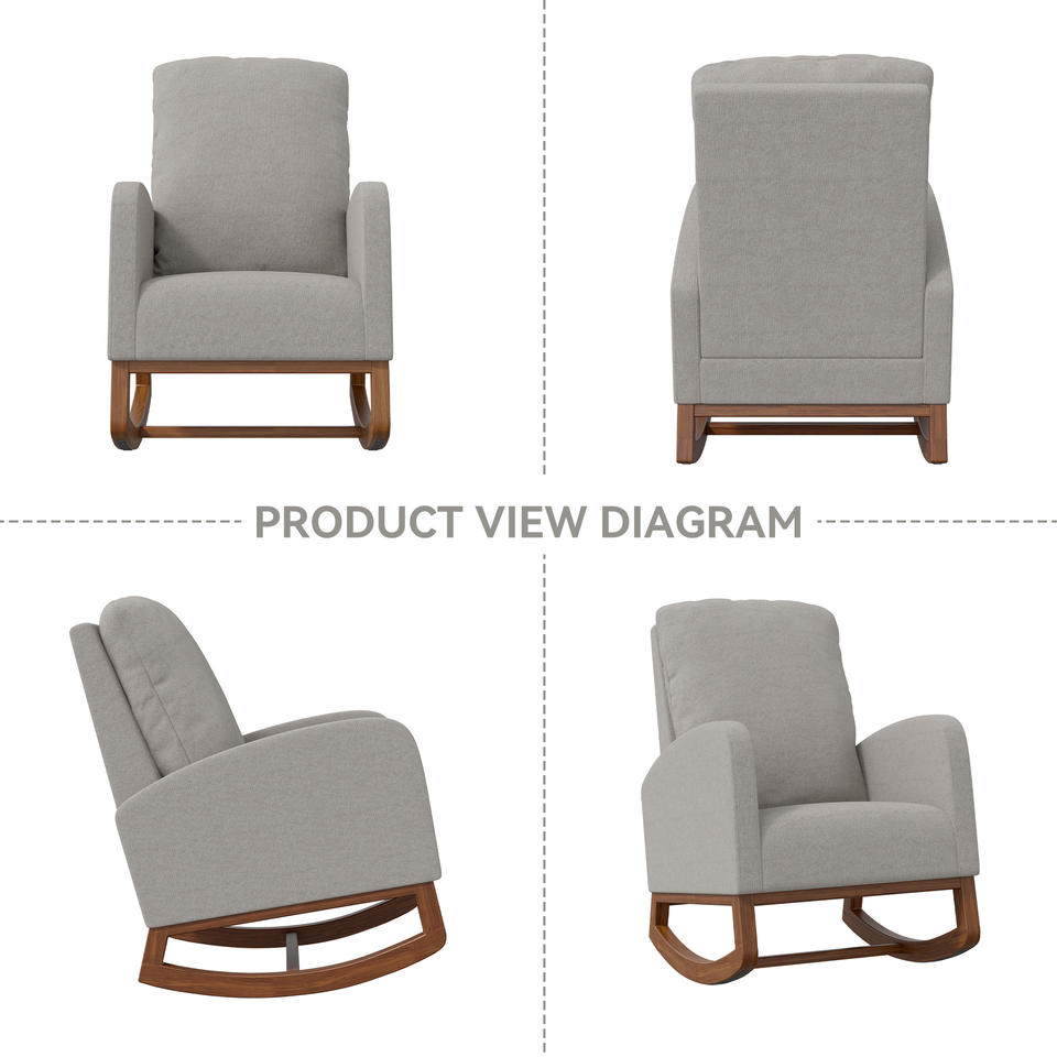 เก้าอี้โยกสไตล์โมเดิร์น ผ้าขนหนูเนื้อนุ่ม ปรับเอนได้ 105 องศา ฟองน้ำความหนาแน่นสูง เบาะหนานุ่ม พนักพิงทรงปีก สำหรับห้องนั่งเล่น
