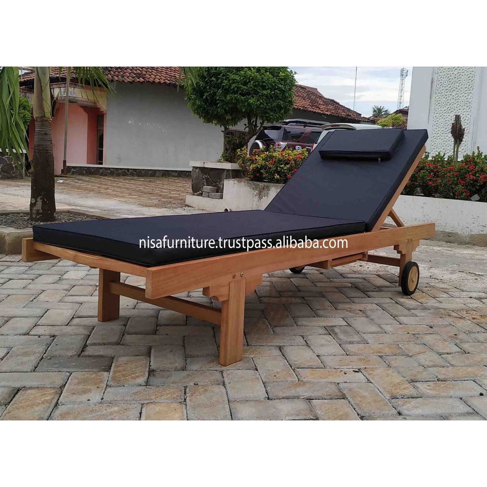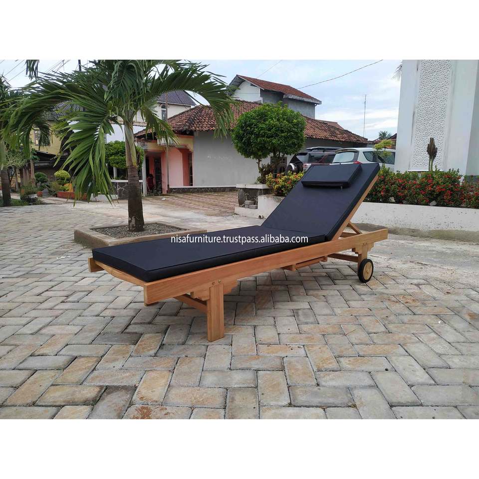 เก้าอี้อาบแดดปรับความชันได้ทันสมัยทำจากไม้สักเนื้อแข็งกันน้ำเบาะรองนั่งแบบพกพาสำหรับสวนกลางแจ้ง