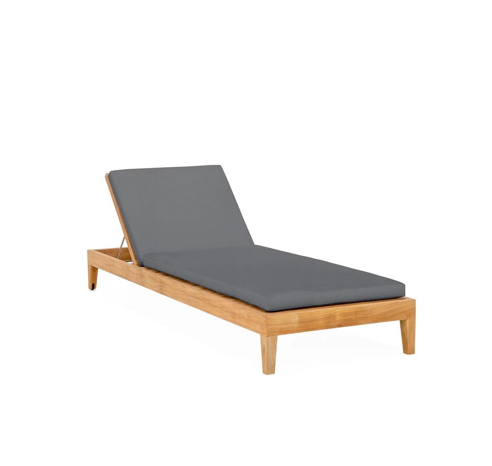 เก้าอี้อาบแดดทำจากไม้สักเนื้อแข็งแบบปรับได้ทันสมัยเบาะกันน้ำสีธรรมชาติสวนกลางแจ้งโรงแรมสำหรับวิลล่าภายนอก