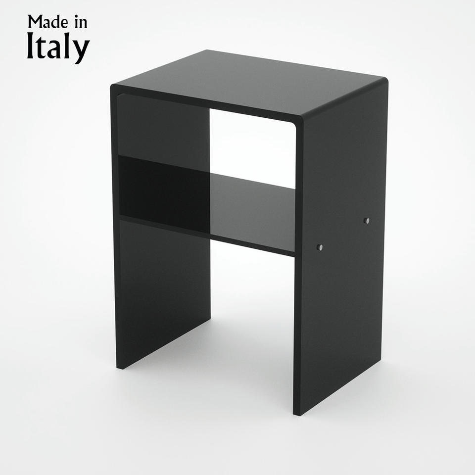 โต๊ะข้างอะคริลิคใสปรับระดับได้ ดีไซน์โนรา เฟอร์นิเจอร์ห้องนั่งเล่นสำหรับอพาร์ทเมนต์และวิลล่า ผลิตในอิตาลี