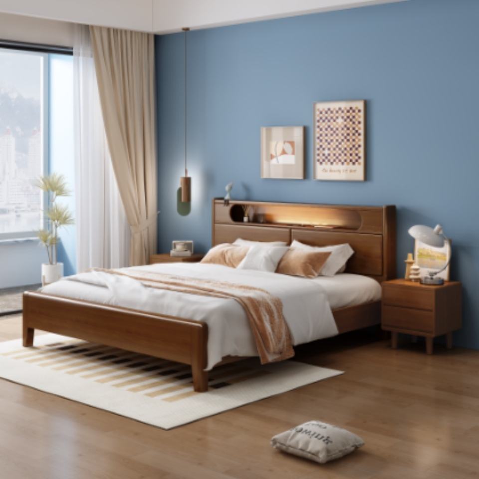 ห้องนอนไม้เนื้อแข็งทันสมัย เรียบง่าย สไตล์โมเดิร์น เหมาะสำหรับโรงแรม อพาร์ทเมนท์ เตียงเดี่ยวไม้เนื้อแข็ง เฟอร์นิเจอร์ห้องนอนทันสมัย